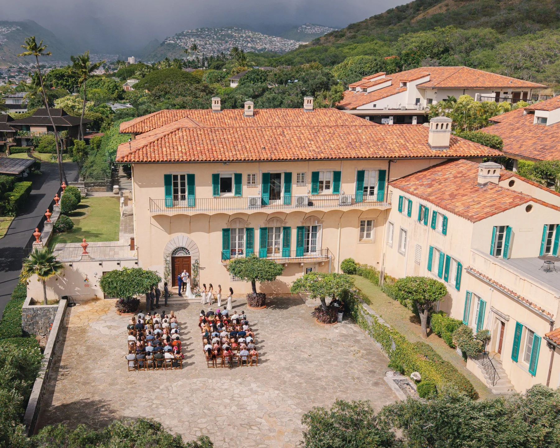 Located in Honolulu on the island of Oʻahu, La Pietra offers a refined, European-inspired estate setting with manicured grounds and elegant architecture. It’s an ideal backdrop for intimate, design-forward celebrations that feel polished, intentional, and quietly luxurious.
